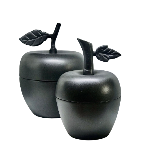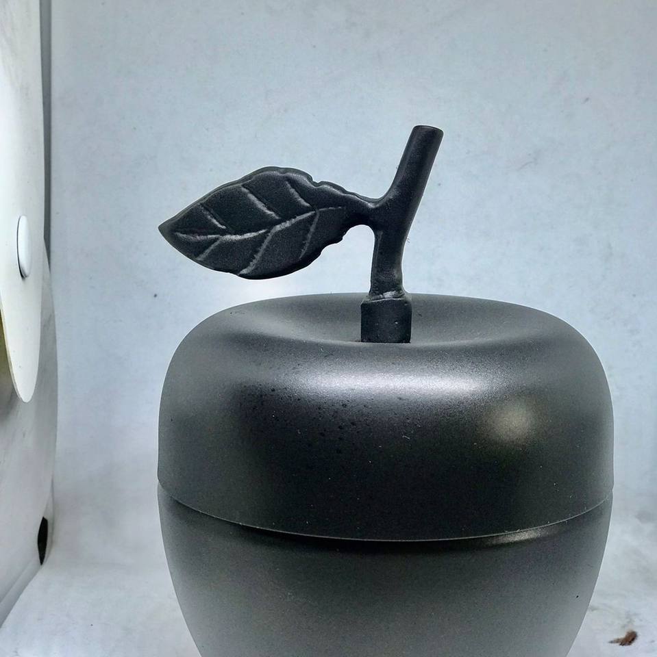 ขวดเทียนสแตนเลสสีดำด้านโลหะรูปแอปเปิ้ลพร้อมด้ามจับตะกั่วชุดเทียนแอปเปิ้ล2ชิ้น
