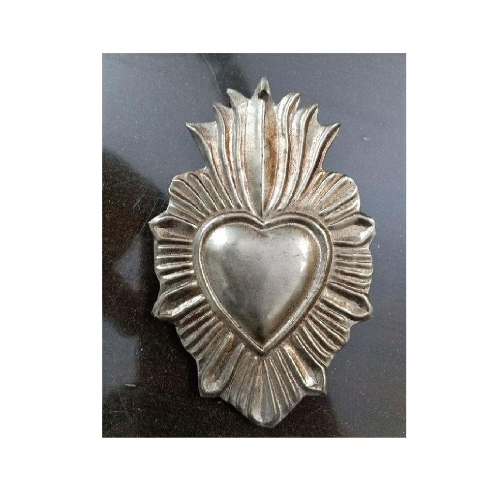 Milagros โลหะหัวใจศักดิ์สิทธิ์โบราณเม็กซิกันหัวใจคาทอลิกแกะสลักล็อกเกตพื้นที่จี้ประดับของขวัญ