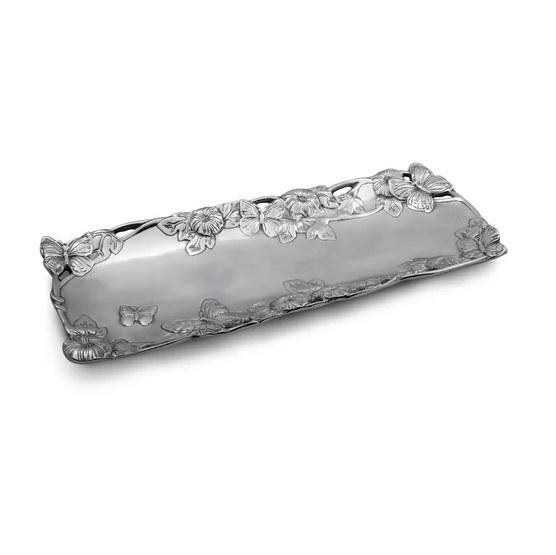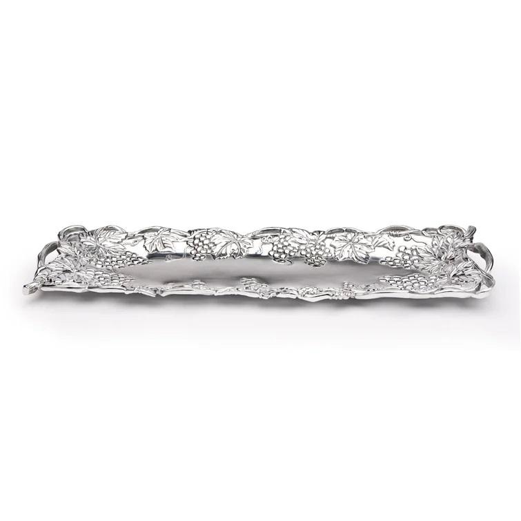 ถาดรองจานกระจกโลหะสำหรับงานแต่งงานถาดเสิร์ฟผลไม้และของว่างพร้อมที่จับถาดเสิร์ฟกาแฟแบบทันสมัย