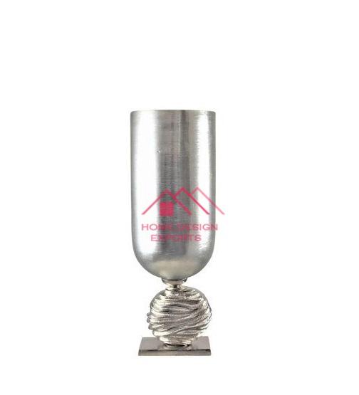 แจกันดอกไม้สไตล์โมเดิร์นทำจากโลหะสีน้ำตาลดีไซน์ลายเส้นแนวดิ่งเคลือบผงทรงกลมสำหรับตกแต่งบ้าน