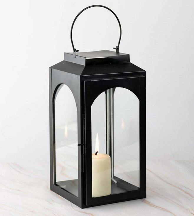 โคมไฟโมร็อกโกโลหะแก้วสีดำด้านพร้อมกรอบเหล็กสำหรับบ้านไร่ตกแต่งสวน