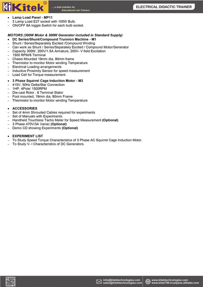 Kitek อุปกรณ์การเรียนการสอนสายอาชีพเครื่องกำเนิดไฟฟ้าโลหะ-II (แบบจำลอง KMG-02) สำหรับการฝึกอบรมเมคคาทรอนิกส์
