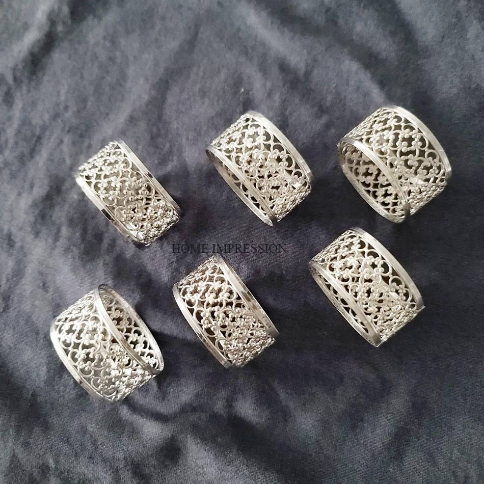 แหวนรองผ้าเช็ดปากโลหะ สีเงิน ทำมือ สำหรับตกแต่งโต๊ะงานแต่ง สไตล์วินเทจ เงางาม ขัดเงา เป็นมิตรกับสิ่งแวดล้อม ของชำร่วย