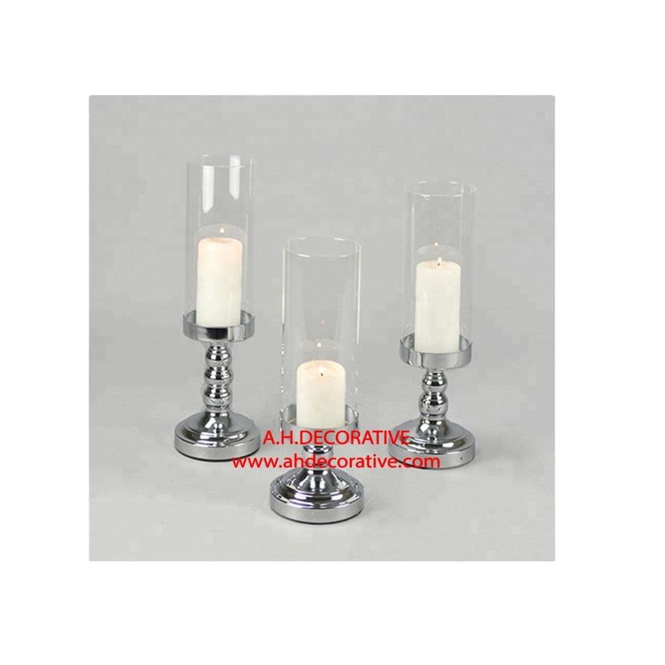เชิงเทียนทีไลท์ชุบนิกเกิลโลหะพร้อมปล่องไฟแก้วชุด3ชิ้นสำหรับตกแต่งเทศกาลคริสต์มาสเชิงเทียนทำมือ