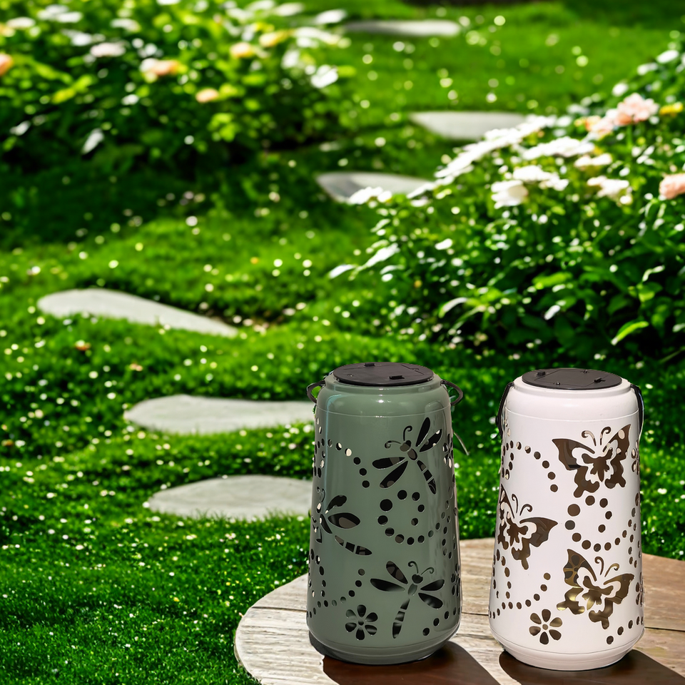 โคมไฟโลหะสำหรับตกแต่งกลางแจ้งไฟสวนสีขาวรูปผีเสื้อแมลงปอสีเขียวขนาด7x12นิ้ว