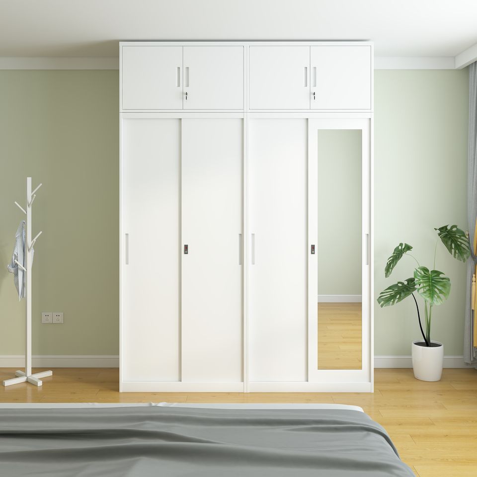 ตู้เสื้อผ้าโลหะ ประตูบานเลื่อน ตู้เก็บของกันไฟ พร้อมกระจก ตู้เก็บของโลหะสำหรับห้องนอน ตู้เสื้อผ้าแบบมีกุญแจล็อค