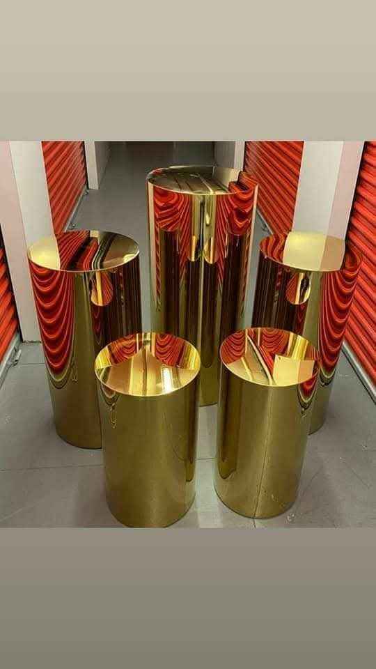 แท่นวางเค้กทรงกระบอกโลหะสีทองสำหรับงานแต่งงาน ชุด 5 ชิ้น