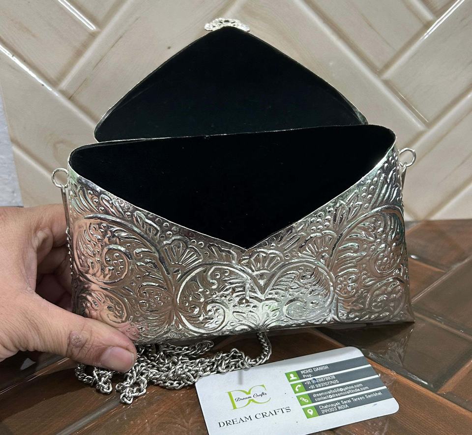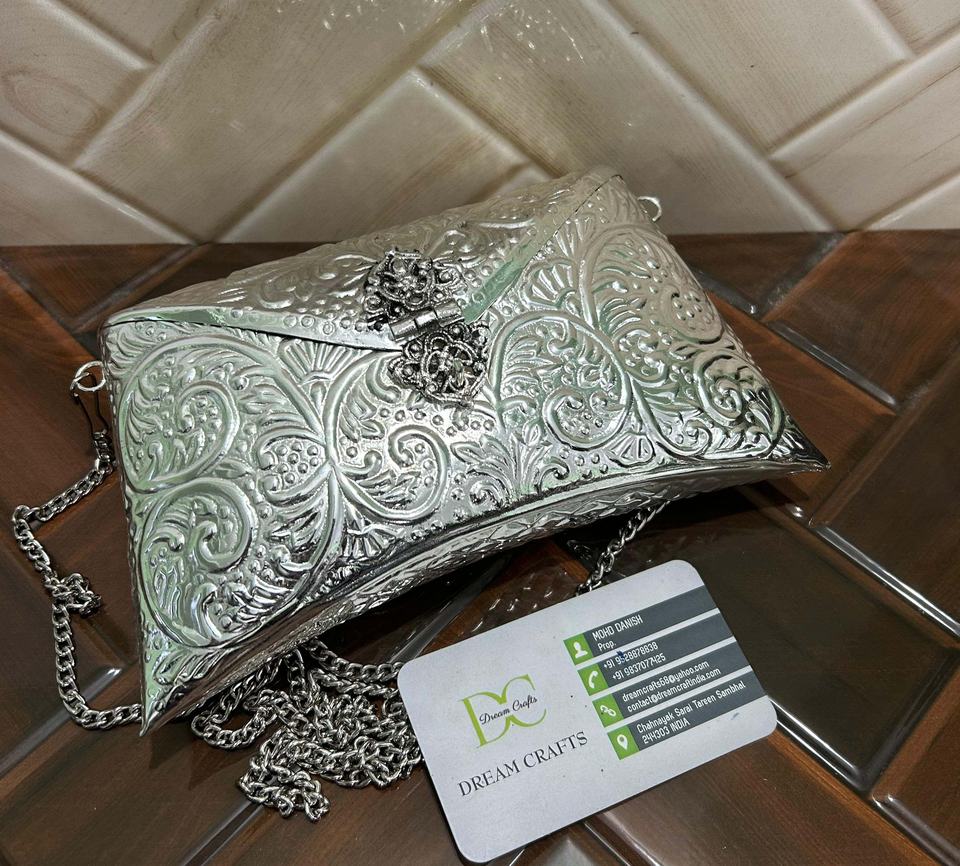 Metal Party Handbags Hand Crafted Embossed Vintage Design Elegant Women Designer Clutch Bag With Detachable Chains Clutch Purse