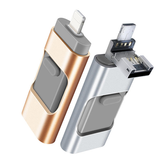 ไดรฟ์ปากกาโลหะ64GB 128GB เมมโมรี่สติ๊ก256GB 3.0 USB 3 in 1ฟังก์ชั่นสำหรับไอโฟนแอนดรอยด์พีซี