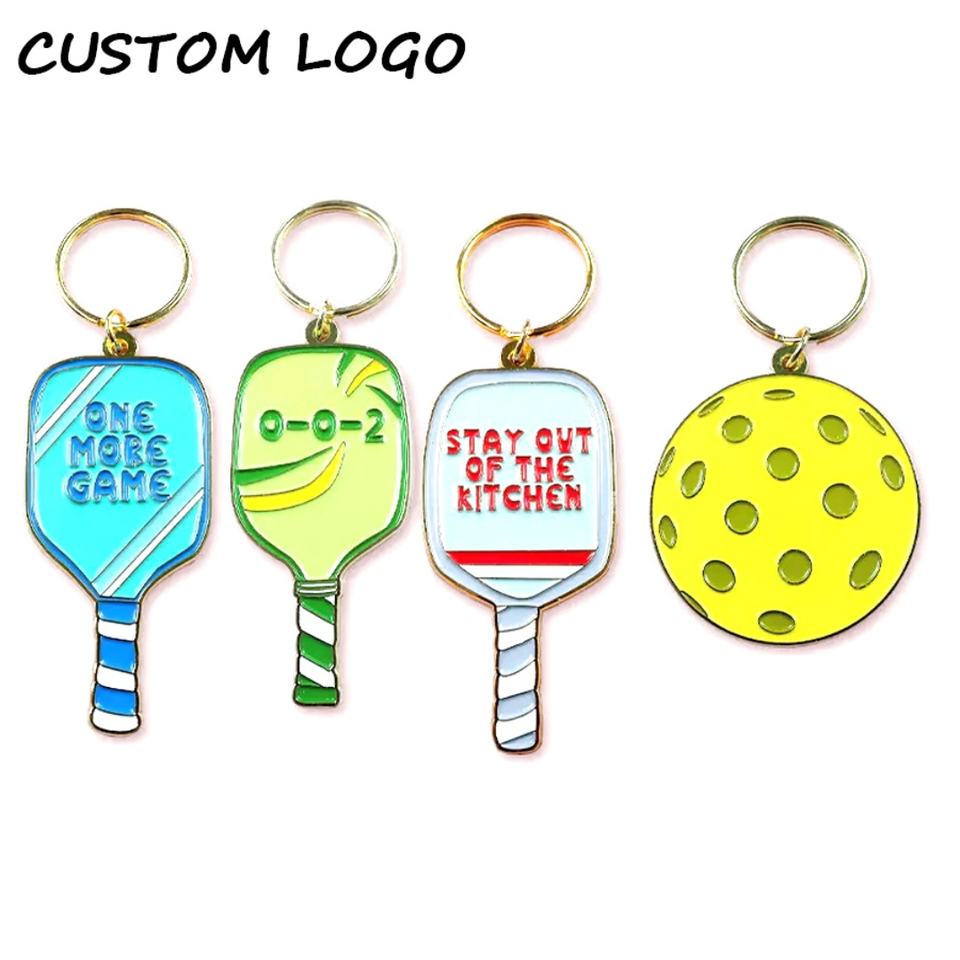 พวงกุญแจโลหะรูปไม้พิกเคิลบอล สั่งทำโลโก้ พวงกุญแจรูปไม้พาเดล พวงกุญแจโลหะเคลือบ พวงกุญแจพิกเคิลบอลแบบสั่งทำ
