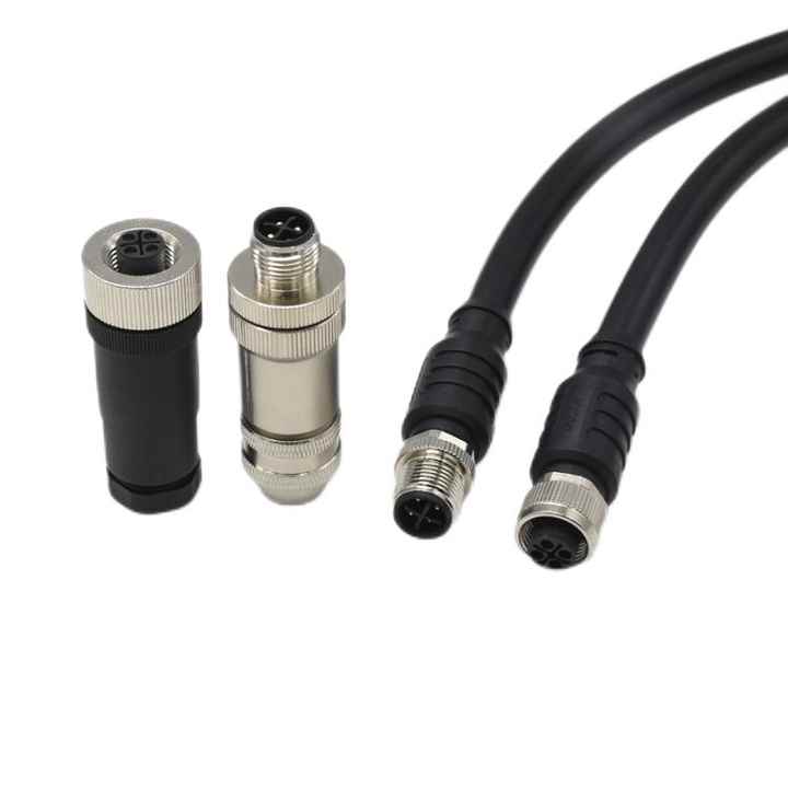ขั้วต่อสายเคเบิลแบบวงกลม M12 สำหรับงานอากาศยาน 4 ขา แบบกันน้ำ IP68 รหัส S ชนิดตัวผู้และตัวเมีย ประกอบด้วยโลหะและพลาสติก