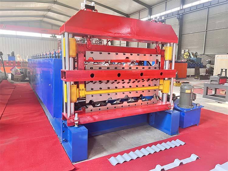 เครื่องขึ้นรูปโลหะม้วนโลหะสามชั้นเครื่องจักรทำกระเบื้องวัสดุมุงหลังคาอัตโนมัติ