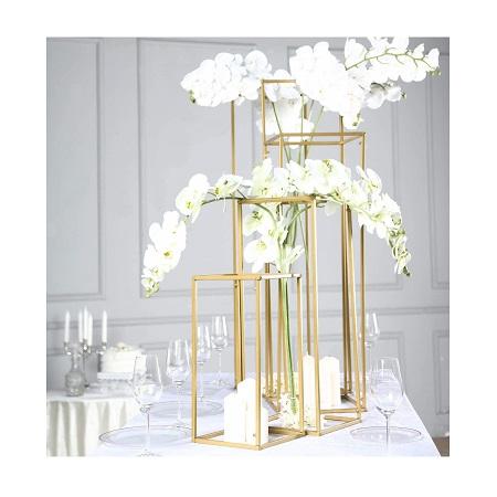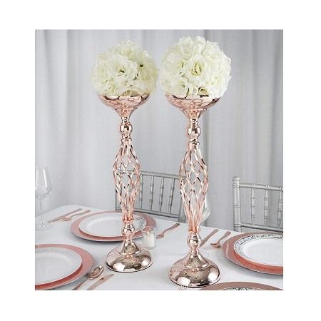 แจกันเหล็กสีโรสโกลด์สุดหรู งานแฮนด์เมดสำหรับตกแต่งโต๊ะงานแต่งงาน คุณภาพมาตรฐานสูง พร้อมขาตั้งดอกไม้