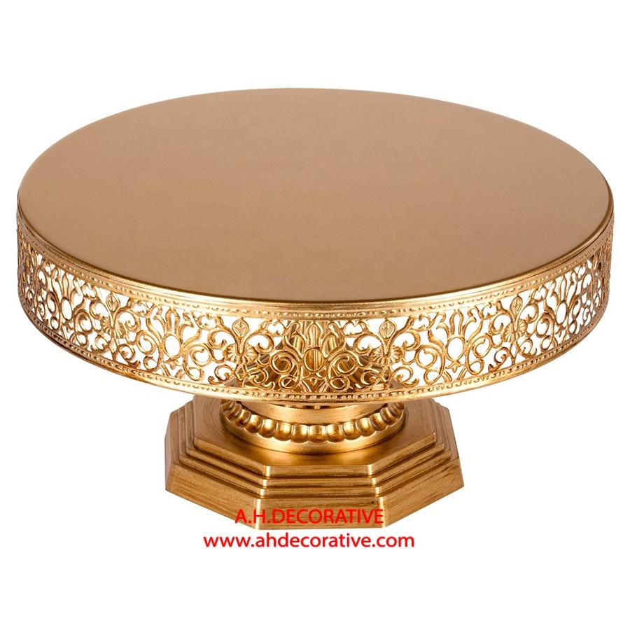 แท่นวางเค้กโลหะทรงกลมทำจากโลหะพร้อมฐานสำหรับตกแต่งสีทองมีเอกลักษณ์