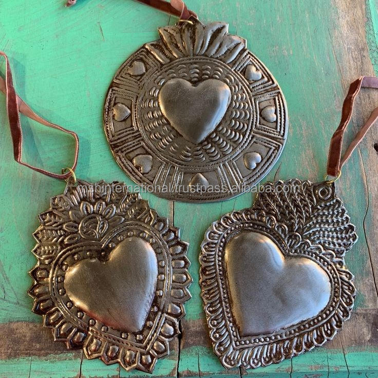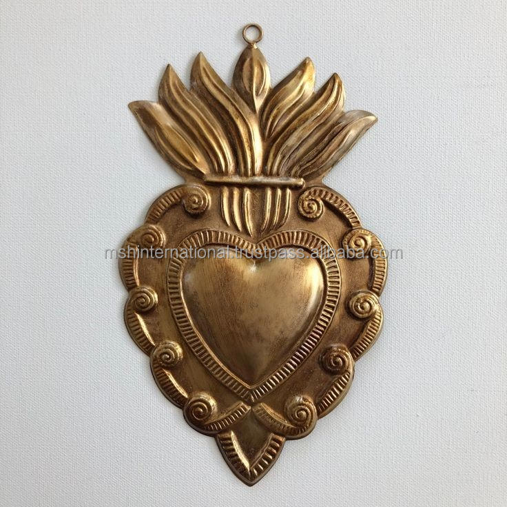 กระจกหัวใจมิลากรอโลส ทำจากโลหะ รูปหัวใจมิลากรอโลสพร้อมไม้กางเขน หัวใจประดับตกแต่งขนาดเล็ก