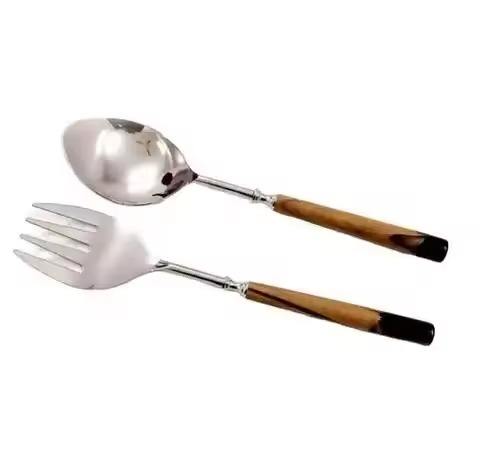 เซิร์ฟเวอร์สลัดโลหะสำหรับเสิร์ฟผักชุบเงินอุปกรณ์บนโต๊ะอาหารสไตล์โมเดิร์นทำจากสเตนเลสสตีลสำหรับเสิร์ฟสลัดและช้อน