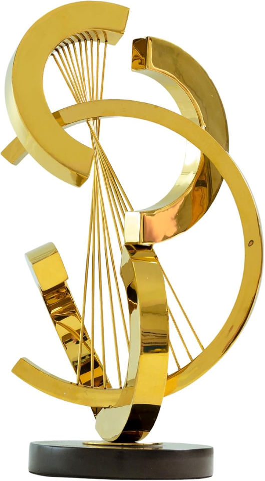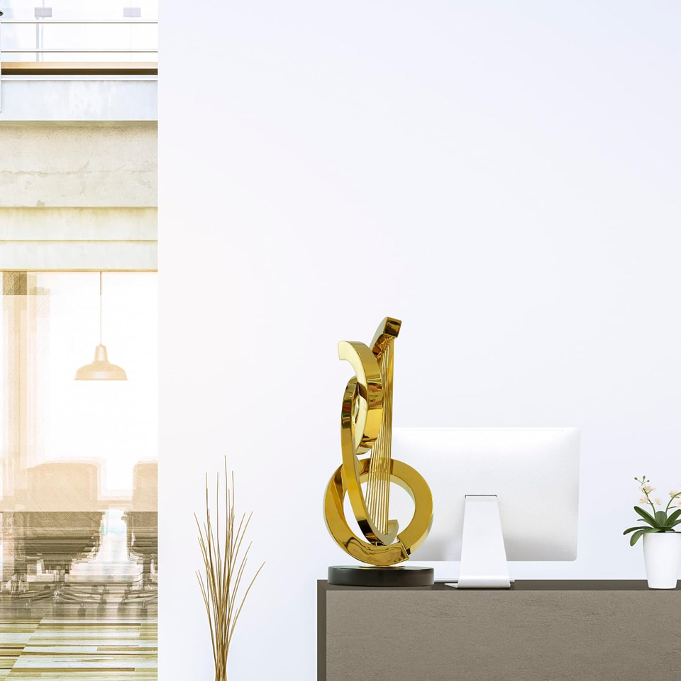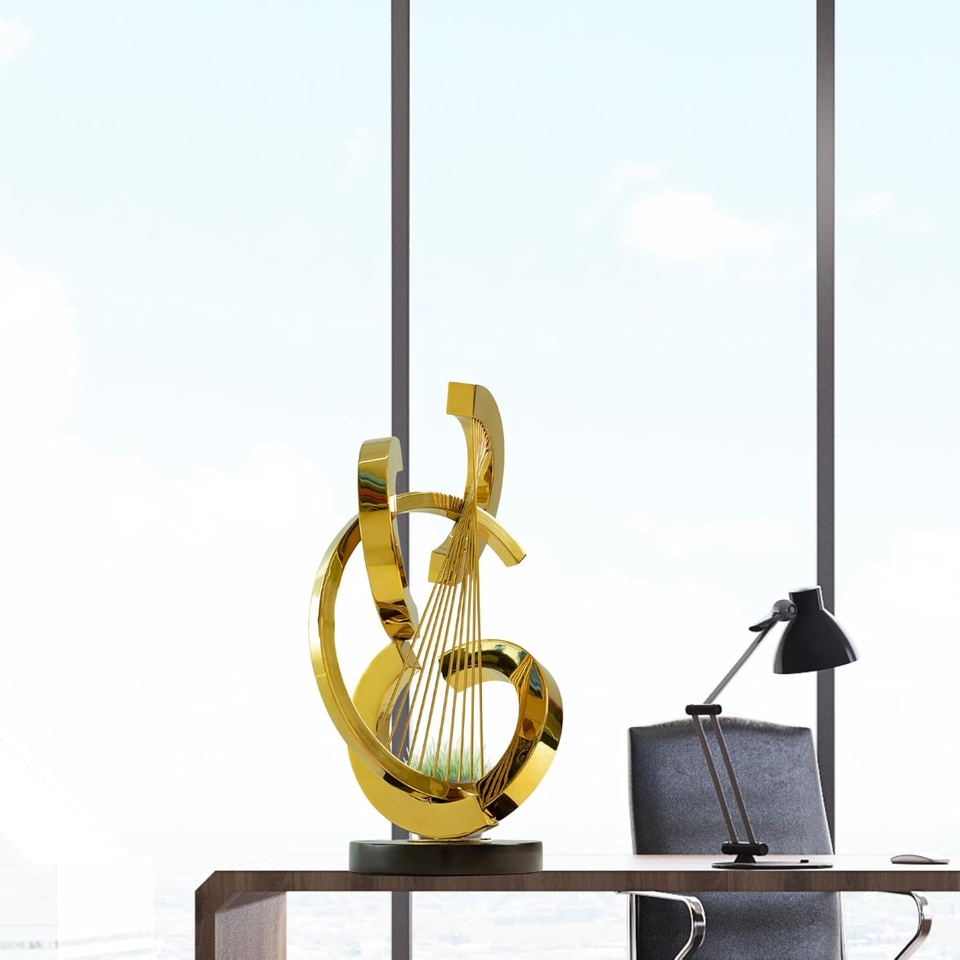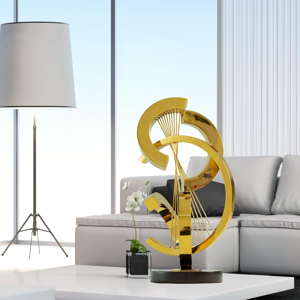 รูปปั้นโลหะตกแต่งบ้านที่ทันสมัยรูปปั้นทองพร้อมฐานสีดำตกแต่งโต๊ะรูปทรงเรขาคณิต