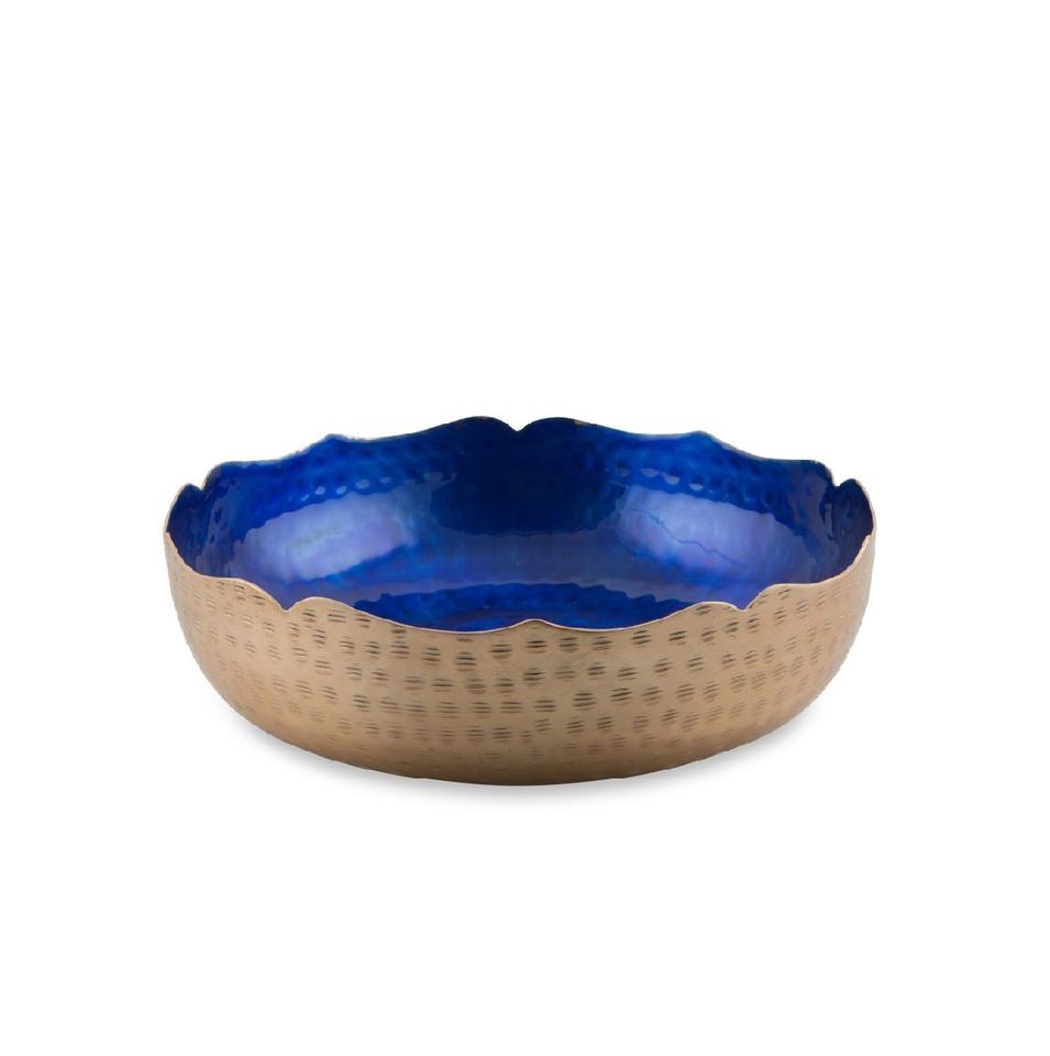 ชามเสิร์ฟโลหะรูปร่างผิดปกติชามแผ่นอลูมิเนียมสำหรับเสิร์ฟเคลือบในชามเสิร์ฟผลไม้สีฟ้า