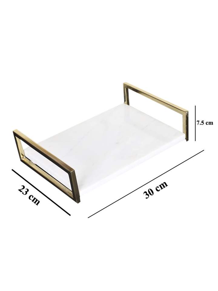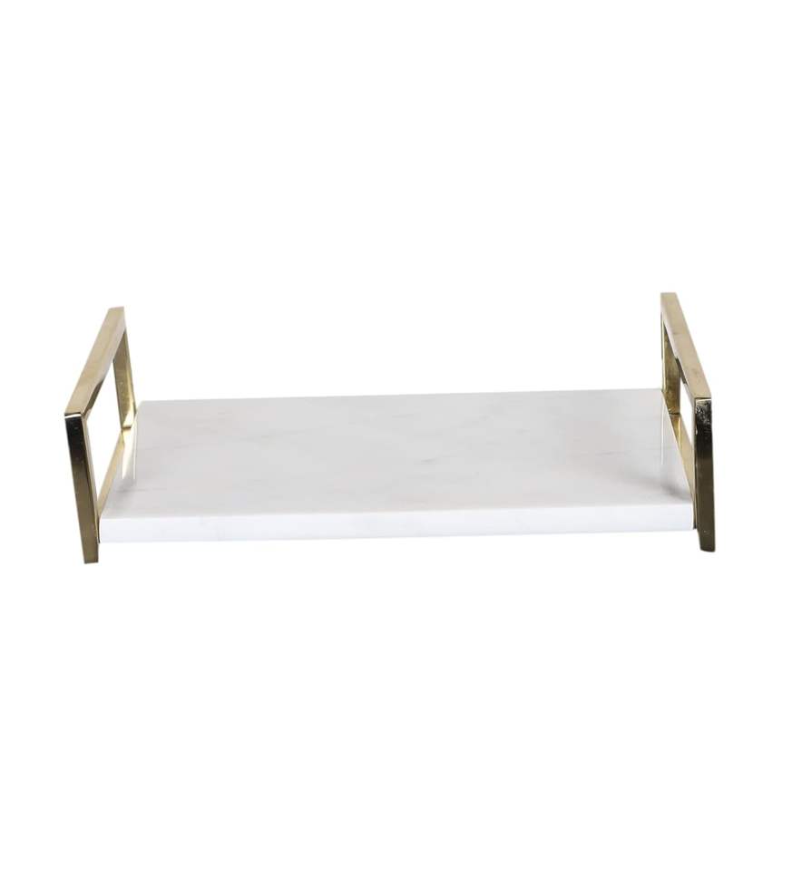 NikkisPride Marble Serving Tray with Metal Handle Elegant Vanity Tray for Home Decor