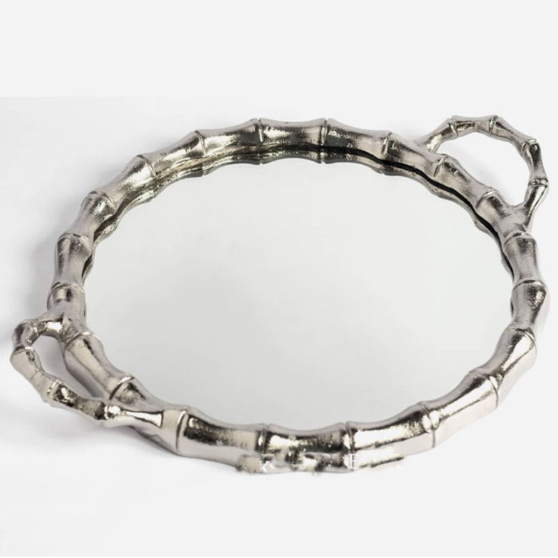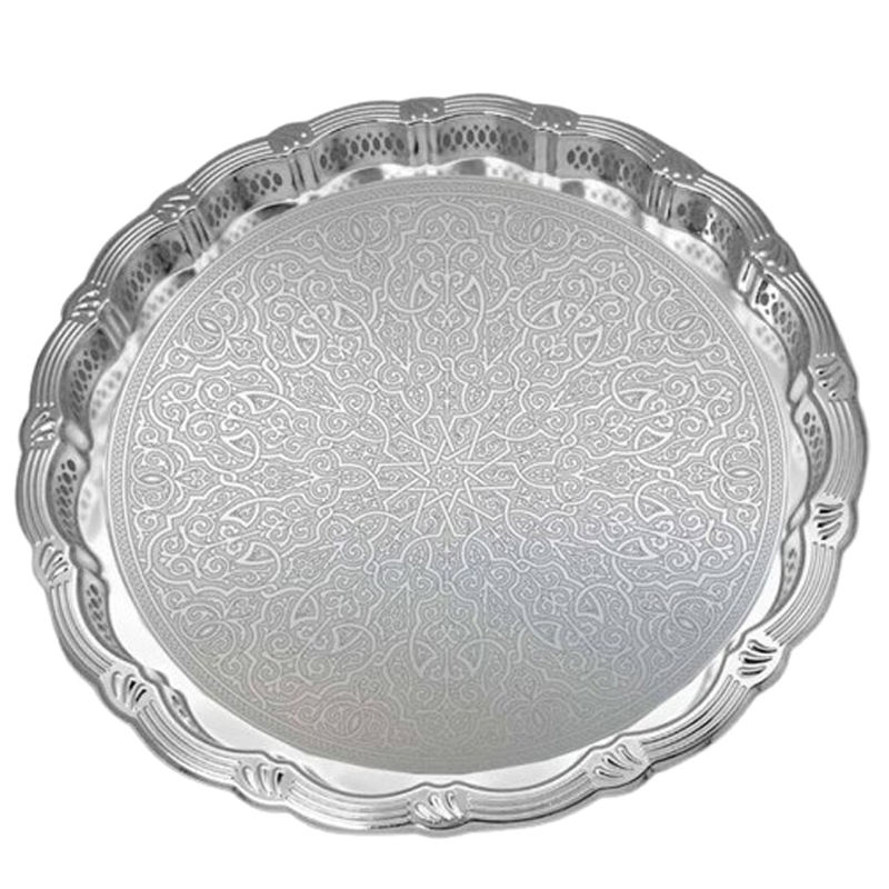 ถาดเสิร์ฟโลหะทรงวงรีเคลือบสีขาว พร้อมหูจับดีไซน์โดดเด่น ผิวเงาสีเงิน ลวดลายใหม่ล่าสุด