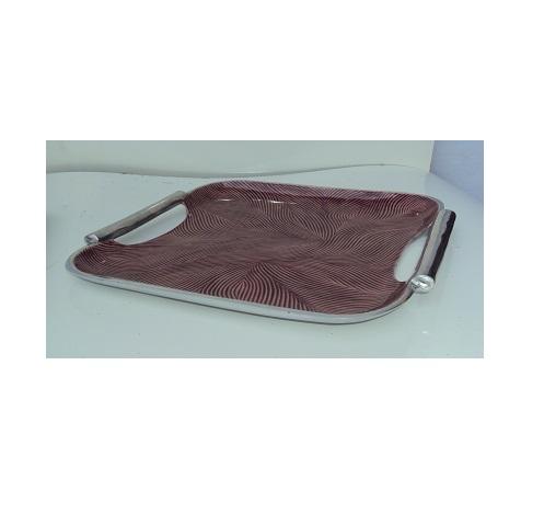 ถาดเสิร์ฟอาหารทำจากอลูมิเนียมมือพร้อมที่จับด้านข้างจานเสิร์ฟอาหารเคลือบนิกเกิลขัดเงาอย่างดี