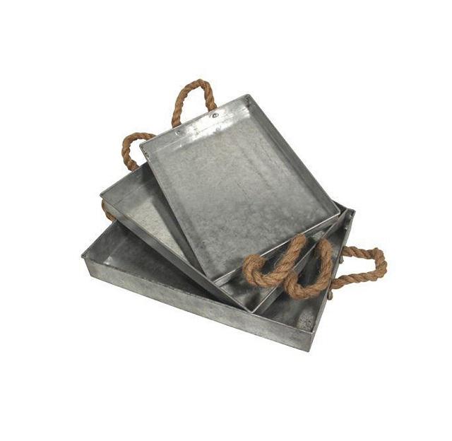 ชุดเสิร์ฟโลหะลองชุบสังกะสีพร้อมเชือกปอกระเจากว้างถาดเสิร์ฟ3ชิ้นสำหรับใช้ในโรงแรม