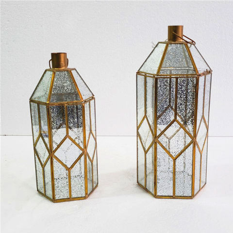 โคมไฟด้านข้างโลหะพร้อม Terrarium ทองสําเร็จรูปแก้วใสแปดเหลี่ยมรูปร่างทองเหลืองเชิงเทียนแก้วสําหรับตกแต่งทําด้วยมือ