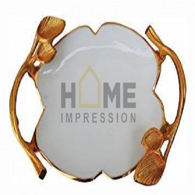 ถาดเสิร์ฟเงินโลหะพร้อมใบมีดจับสีดำอุปกรณ์ตกแต่งแฟนซีอุปกรณ์รับประทานอาหารแฮนด์เมด