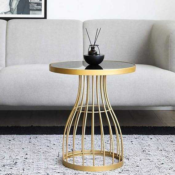 โต๊ะข้างโซฟาโลหะโต๊ะกาแฟกระจกนิรภัยโต๊ะข้างเตียงห้องนั่งเล่นระเบียงแข็งแรงและมั่นคง