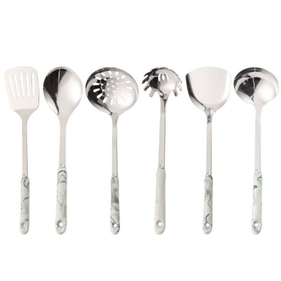 ชุดสปาเก็ตตี้โลหะพร้อมที่จับหินอ่อนสแตนเลสขัดเงาเหมาะสำหรับรับประทานอาหารและเครื่องครัวชั้นดี