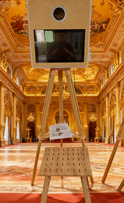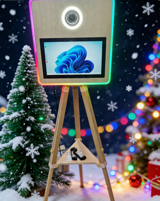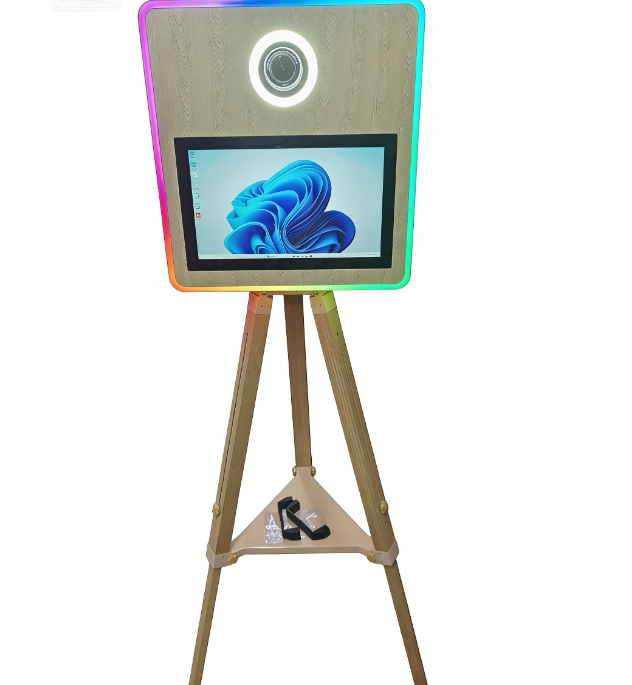 ตู้ถ่ายภาพเซลฟี่แบบพ่นสีโลหะพร้อมกระจกมหัศจรรย์ หน้าจอสัมผัส กล้องถ่ายรูป และเครื่องพิมพ์ (ตัวเลือกเสริม) พร้อมกล่องใส่แบบพกพา