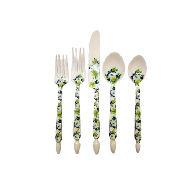 เครื่องใช้บนโต๊ะอาหารดีไซน์ดอกไม้สีขาวโบราณทำจากสแตนเลสสตีลสำหรับห้องครัวโรงแรมร้านอาหาร