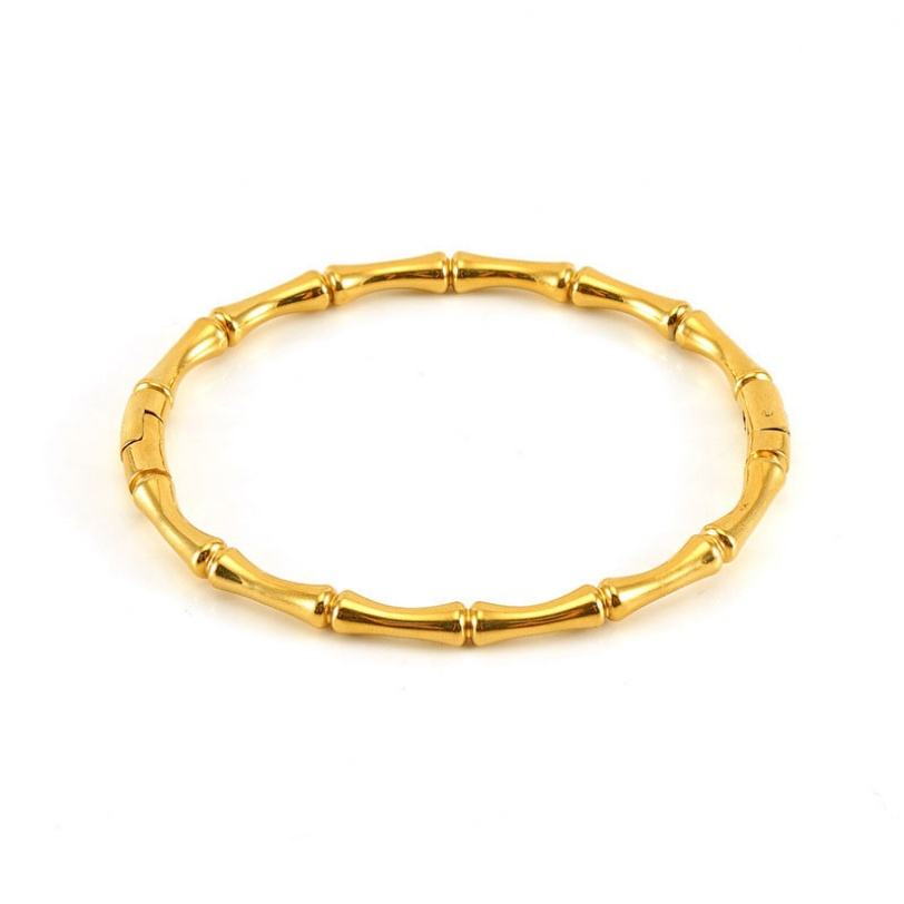 กำไลข้อมือสแตนเลสสตีลดีไซน์หรูหราแบบเปิดสไตล์ดูไบสีทอง 18k แฟชั่นกำไลลายไม้ไผ่สำหรับสุภาพสตรี