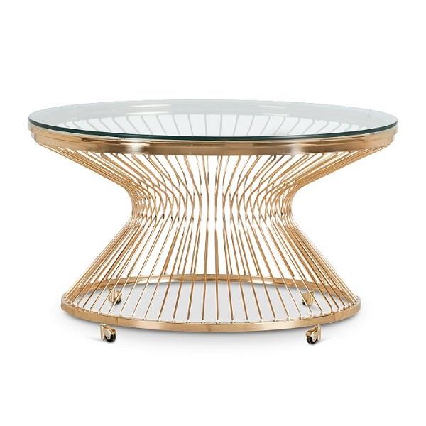 โต๊ะกาแฟโลหะสเตนเลสสตีลสีทอง,โต๊ะกาแฟพร้อมล้อเลื่อนด้านล่างเฟอร์นิเจอร์ห้องนั่งเล่น