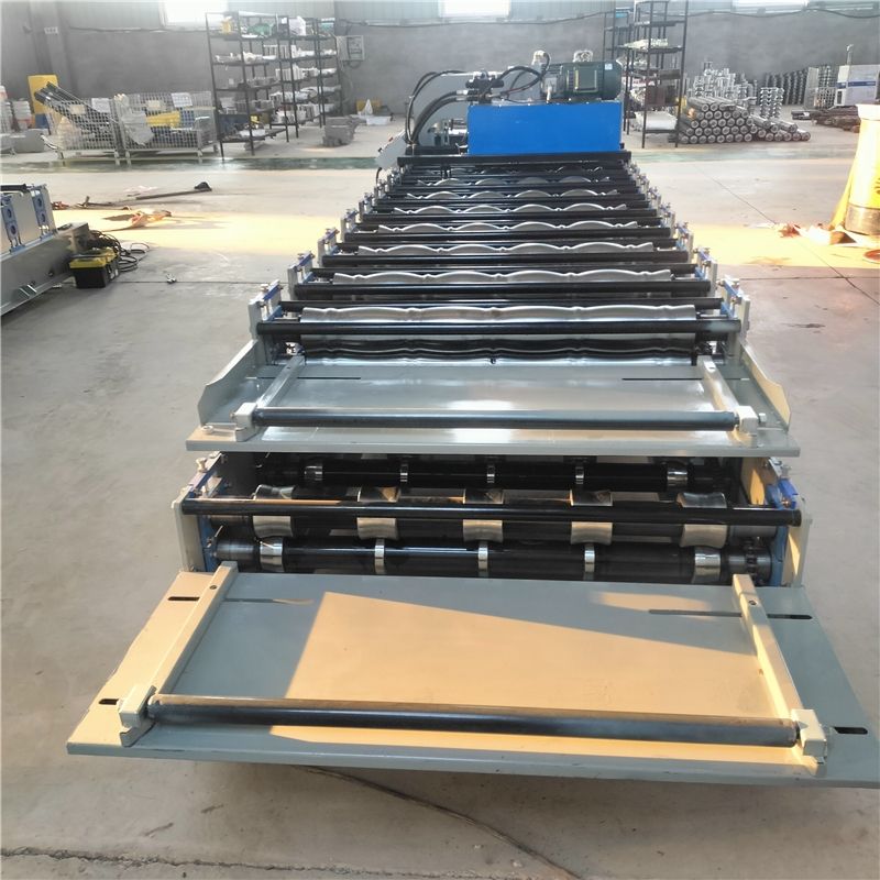 เครื่องรีดแผ่นเหล็กสองชั้นเครื่องขึ้นรูปแผ่นหลังคาเหล็กโลหะสองชั้น