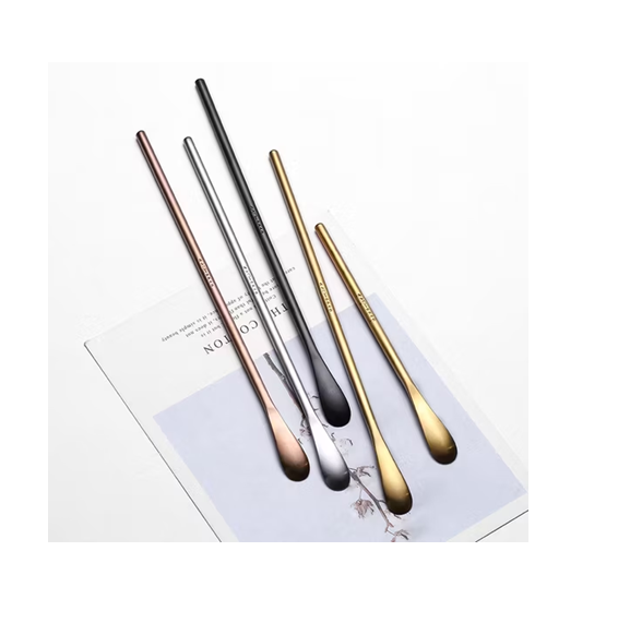 ช้อนคนเหล็กทำจากเหล็กพร้อมด้ามจับยาวช้อนคนค็อกเทลช้อนตักน้ำแข็งขนาดเล็กช้อนผสมค็อกเทล