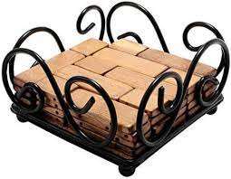 ชุดที่รองแก้วถ้วยหินทรงกลมพร้อมฐานรองแก้วโลหะ