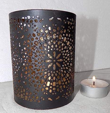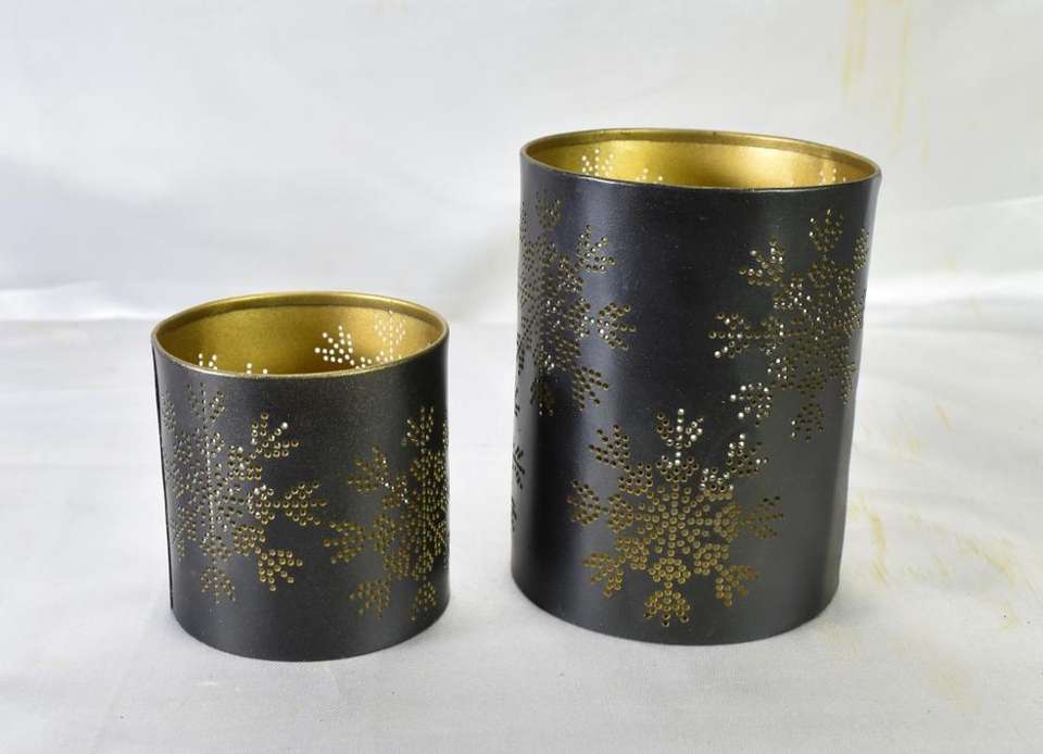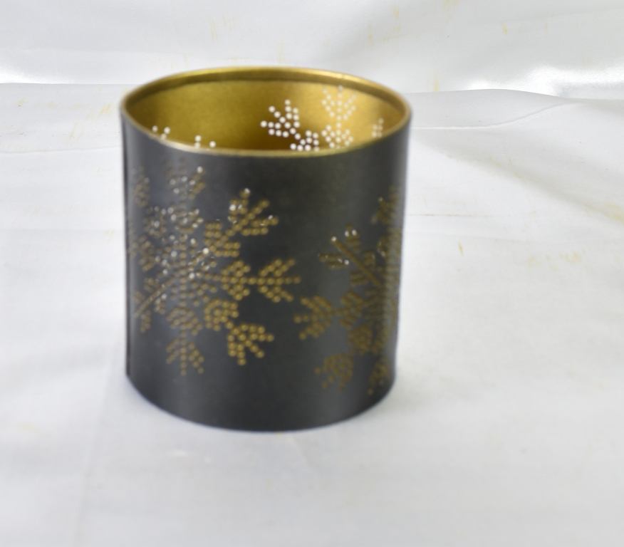 เชิงเทียนโลหะเคลือบผงสำเร็จรูปรูปทรงกลมสีดำเคลือบทองด้านใน