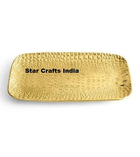 ถาดเสิร์ฟอาหารเคลือบกระจกสีทองพร้อมด้ามจับสำหรับโรงแรมถาดเสิร์ฟอาหารแบบเคลือบสีเงิน