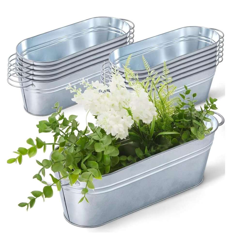 กระถางต้นไม้โลหะมีหูจับ กระถางสวนสังกะสีลูกฟูก สำหรับตกแต่งบ้านทั้งภายนอกและภายใน