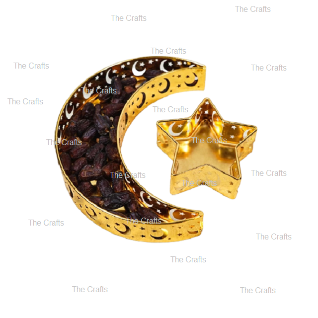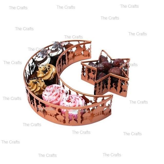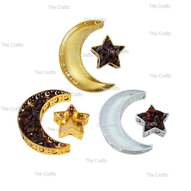 ชุดถาดช็อคโกแลตขนมโลหะสีขาวรูปดาวสองดวงและรูปดวงจันทร์วันที่อิสลาม