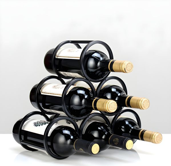 ชั้นวางขวดไวน์โลหะ สำหรับ 6 ขวด วางซ้อนกันได้ ชั้นวางโชว์บาร์ ชั้นวางไวน์แดงในครัว ราคาดีที่สุด
