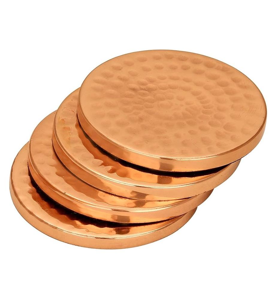 ชุดจานรองแก้วลวดโลหะสี่ชิ้นพร้อมทองแดงทรงกลมดีไซน์หรูหราคุณภาพสูงสําหรับเสิร์ฟเครื่องดื่มชั้นนํา