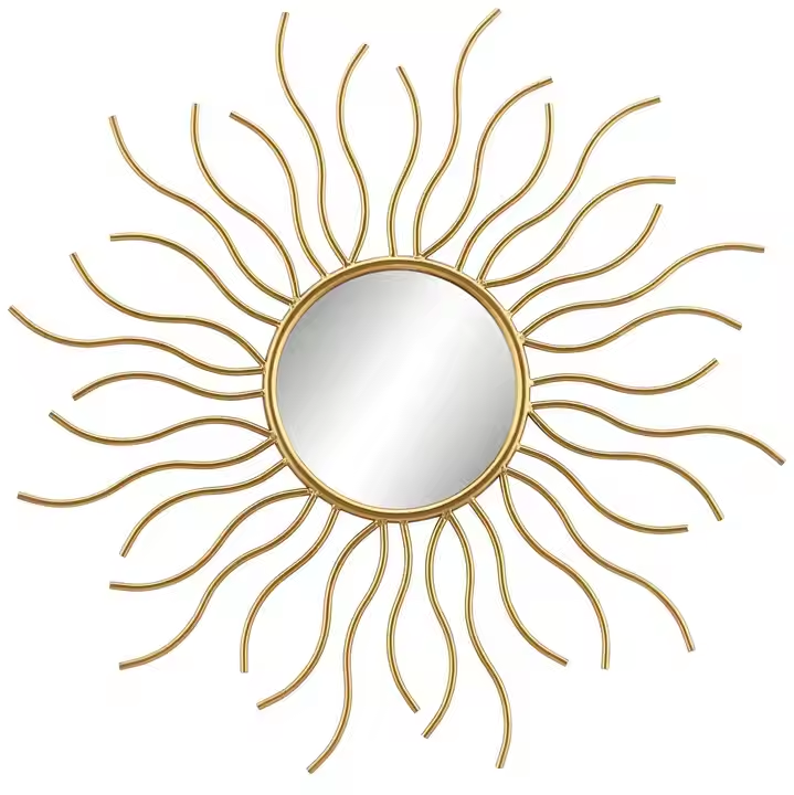กระจกติดผนังโลหะทรงกลมสไตล์โมเดิร์นพร้อมกรอบดีไซน์เนอร์สำหรับตกแต่งห้องนอนและห้องนั่งเล่นด้วยลวดโลหะ