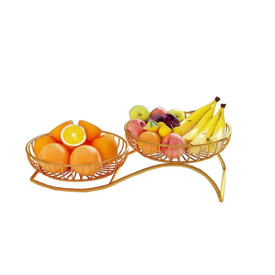 ตะกร้าผลไม้ลวดโลหะอเนกประสงค์สำหรับจัดเก็บของในบ้านและที่ทำจากเหล็กชามผักและผลไม้ (สีทอง)