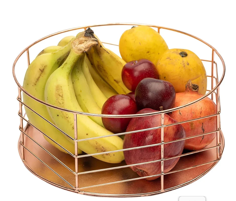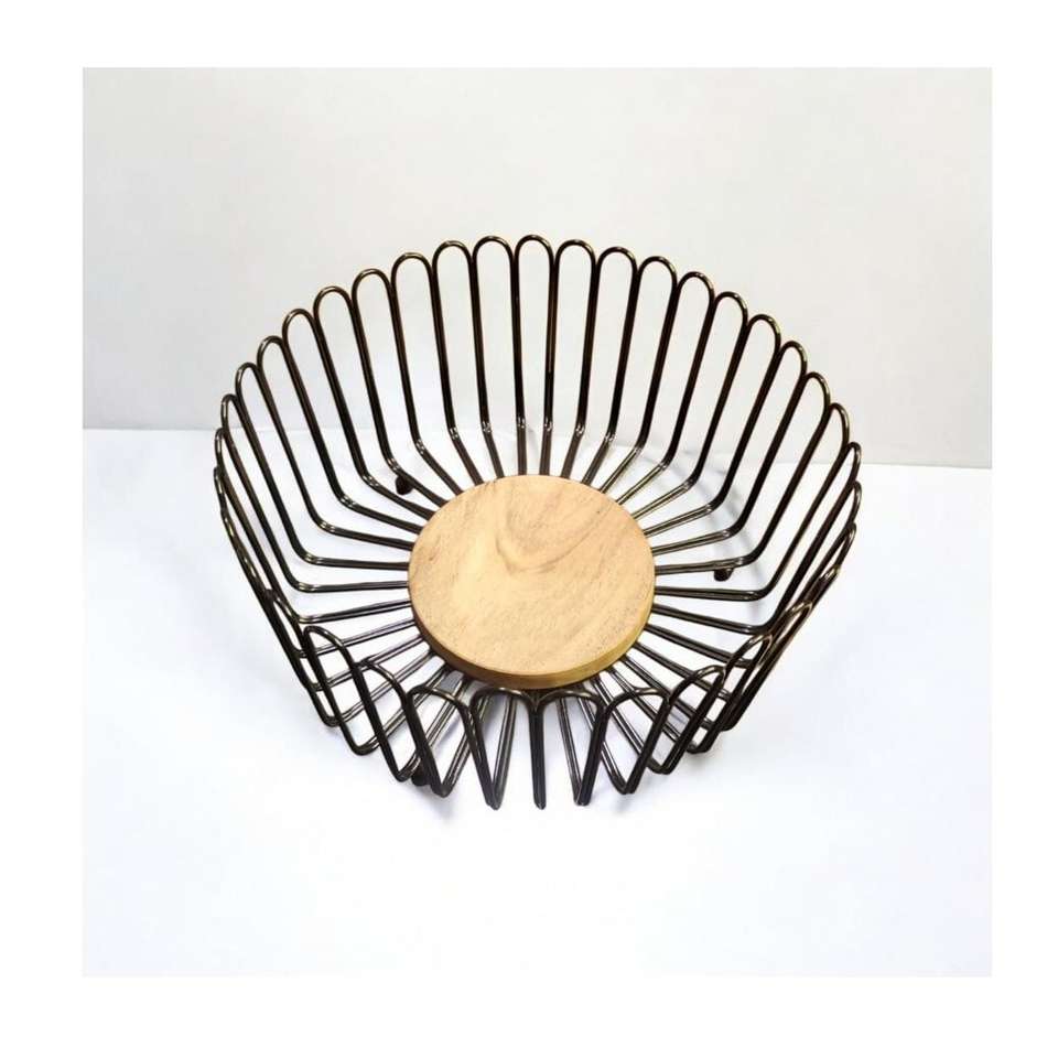 ตะกร้าผลไม้ลวดโลหะพร้อมฐานไม้ ตกแต่งเคาน์เตอร์ครัว ชามใส่ผลไม้ทันสมัย สำหรับเก็บผลไม้และผัก