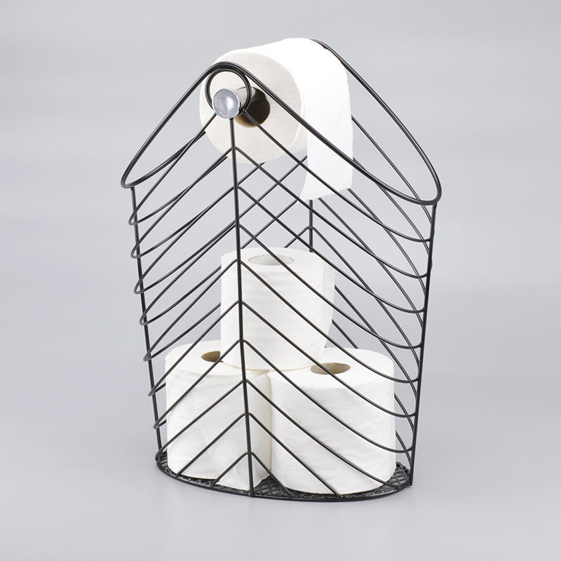 ที่ใส่กระดาษทิชชู่ลวดโลหะเคลือบเงาโครเมี่ยมทันสมัยพร้อมม้วนอะไหล่และตะกร้าเก็บของสำหรับห้องน้ำดีไซน์เป็นมิตรกับสิ่งแวดล้อม