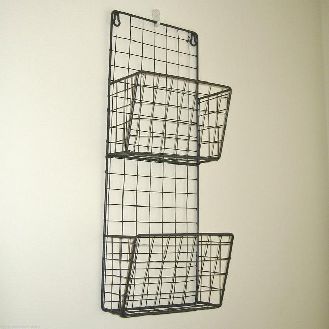 ตะกร้าแขวนผนังลวดโลหะสำหรับจัดเก็บของใช้ในบ้านพร้อมเคลือบผงสีทนทาน