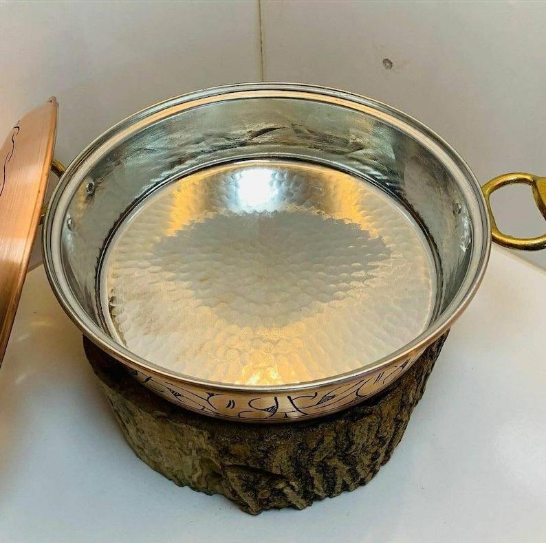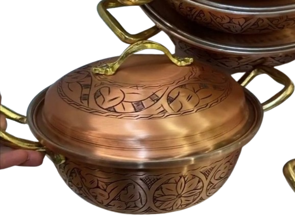 หม้อโลหะตีลายขัดเงา งานแฮนด์เมด ดีไซน์สวยหรู คลาสสิก สำหรับทำอาหาร
