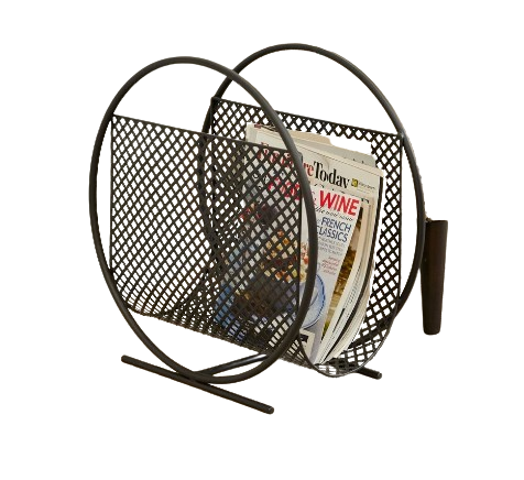 ชั้นวางของโลหะและทองเหลืองชั้นวางนิตยสารวินเทจแบบเจาะรูที่จัดระเบียบนิตยสารบ้านและสำนักงานโรงแรม